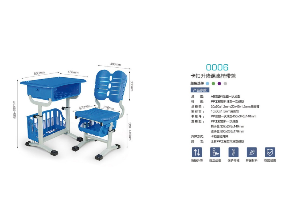 0006 卡扣升降课桌椅带篮