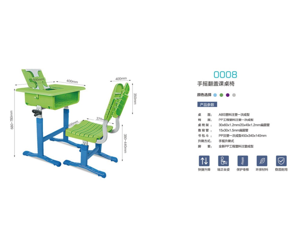 0008 手摇翻盖课桌椅