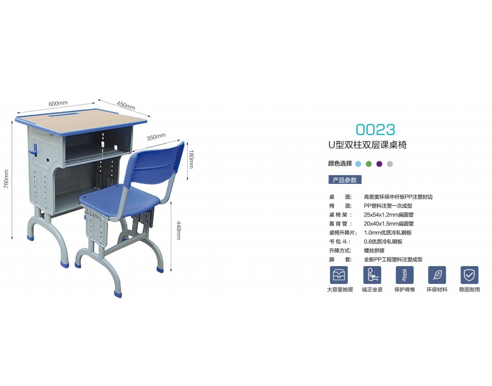 0023 U型双柱双层课桌椅