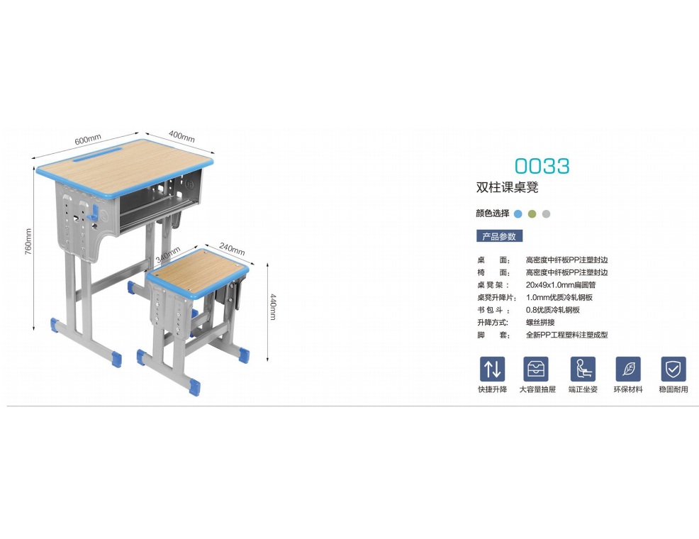0033 双柱课桌凳